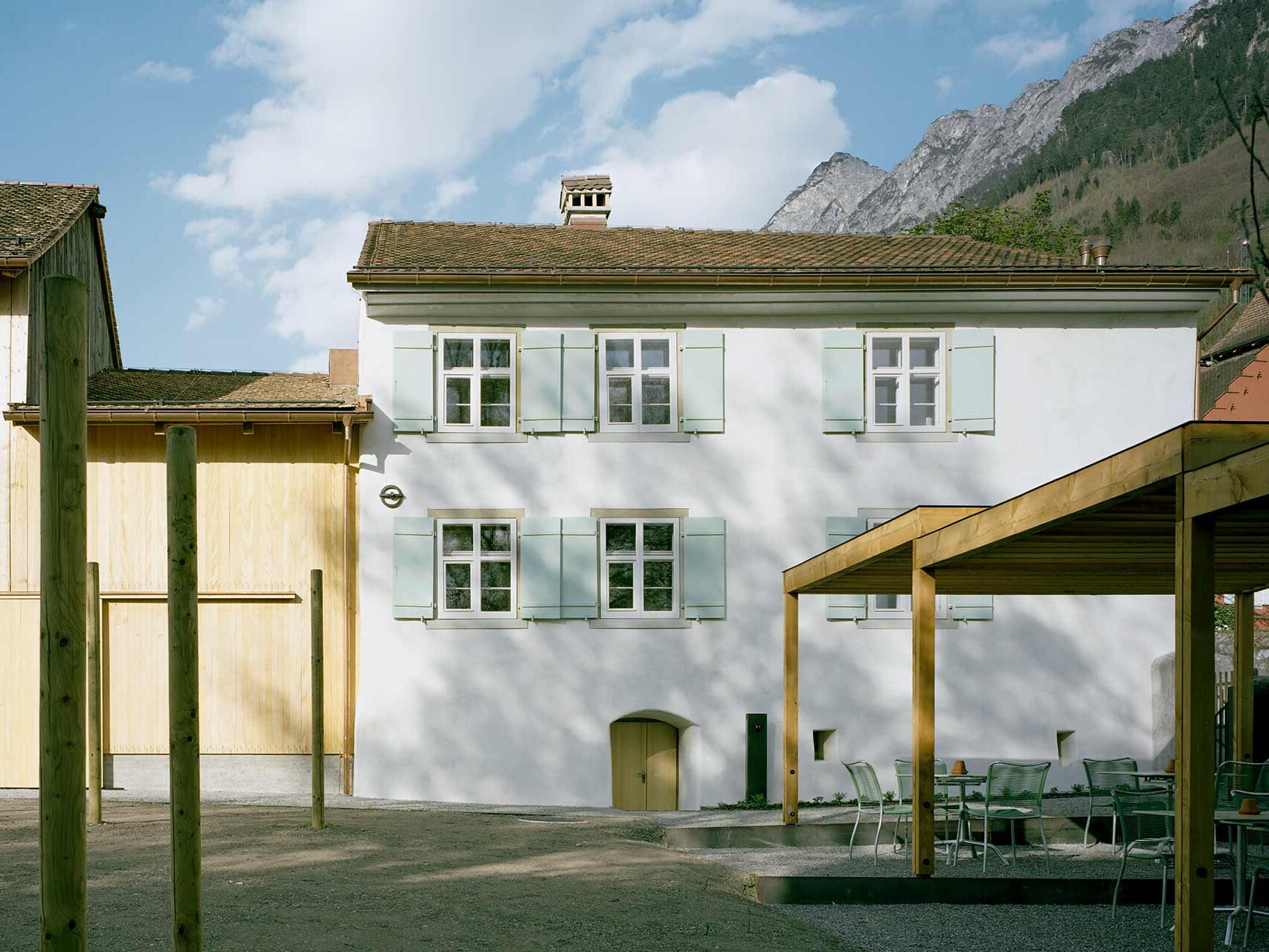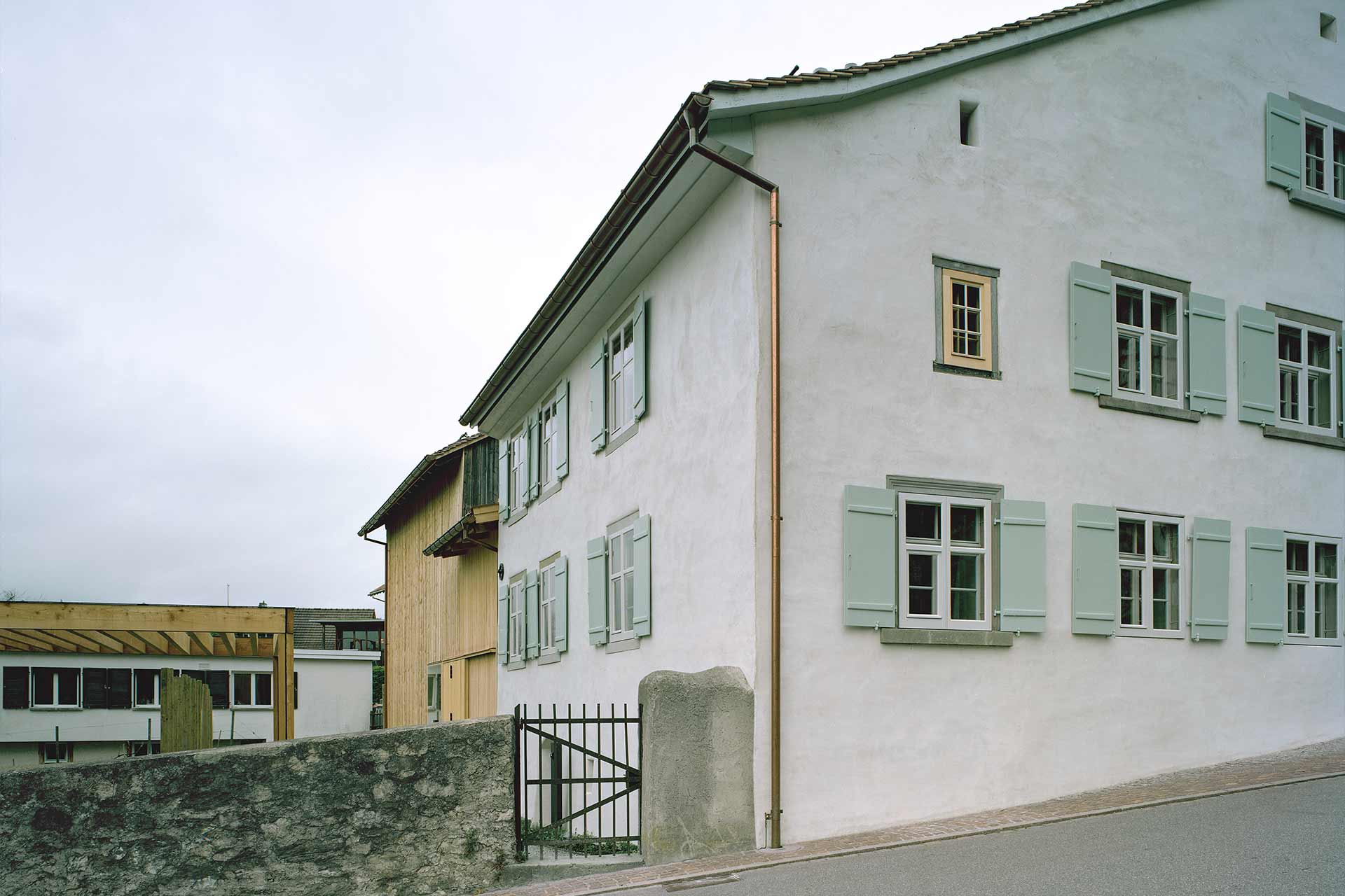 Die Hofstätte Hintergasse ist ein spätmittelalterliches Doppelwohnhaus mit Ökonomiebauten aus dem Jahr 1494 und zählt zu den ältesten Bauobjekten Liechtensteins. Seit 1993 denkmalgeschützt, steht das Ensemble für einen behutsamen, zukunftsgerichteten Umgang mit baukulturellem Erbe. Der Fensterersatz erfolgte im System Haupt Antico (mehrheitlich Weisstanne mit Ölfarbe, innen teils Esche natur) sowie die Eingangsholztüre im System Haupt Cultura. Im Zuge der Sanierung realisierten wir die einfachverglaste Holzvorfenster als originalgetreuen Nachbau sowie die Holzgitter mit Lamellen.