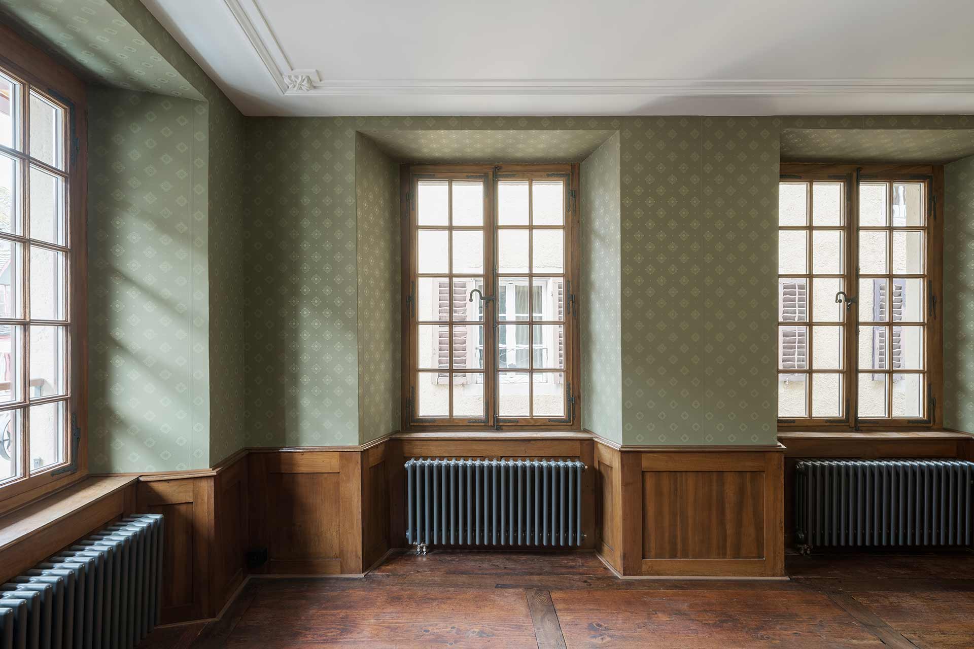 ProjektFensterersatz, FensterrestaurierungAbteilungenFensterbauLeistungenFensterbauBauherrschaftOrtsbürgergemeinde Bremgarten, BremgartenArchitektenCastor Huser Architekten AG, BadenJahr2023FotosBeat Bühler, Fotografie GmbH, Zürich