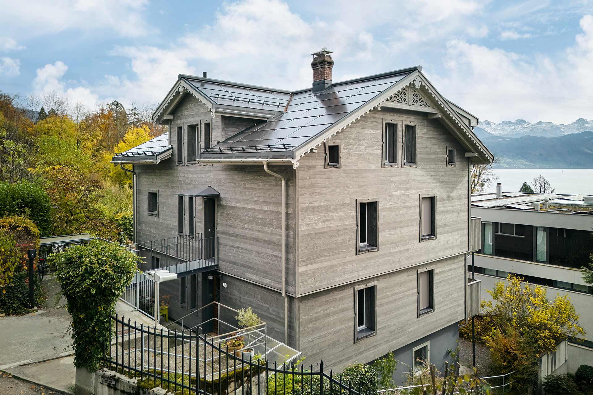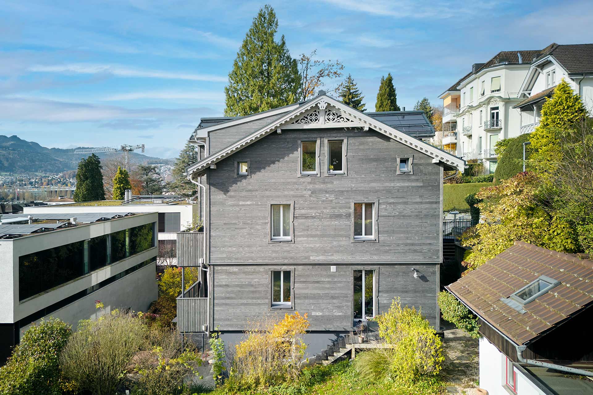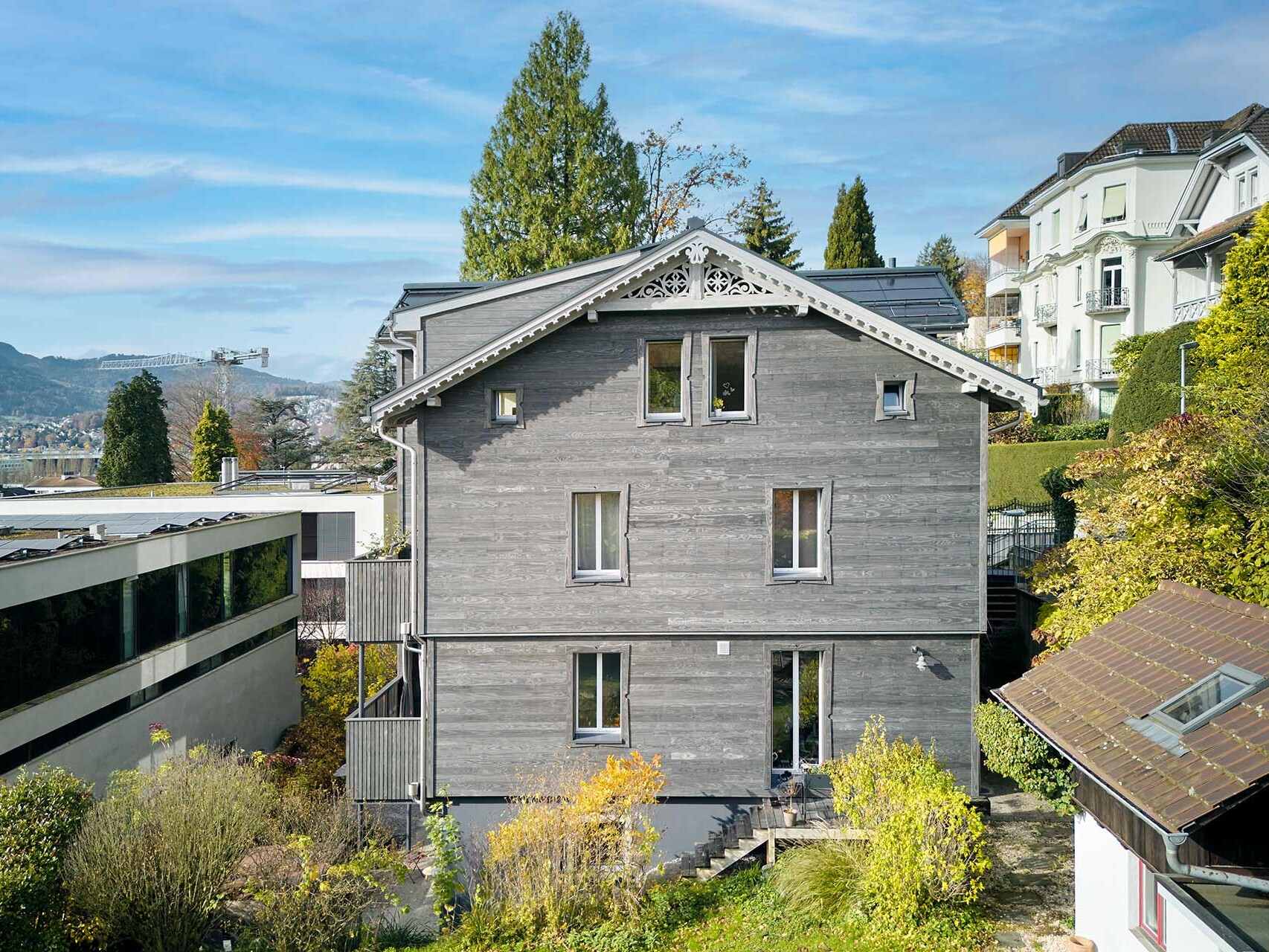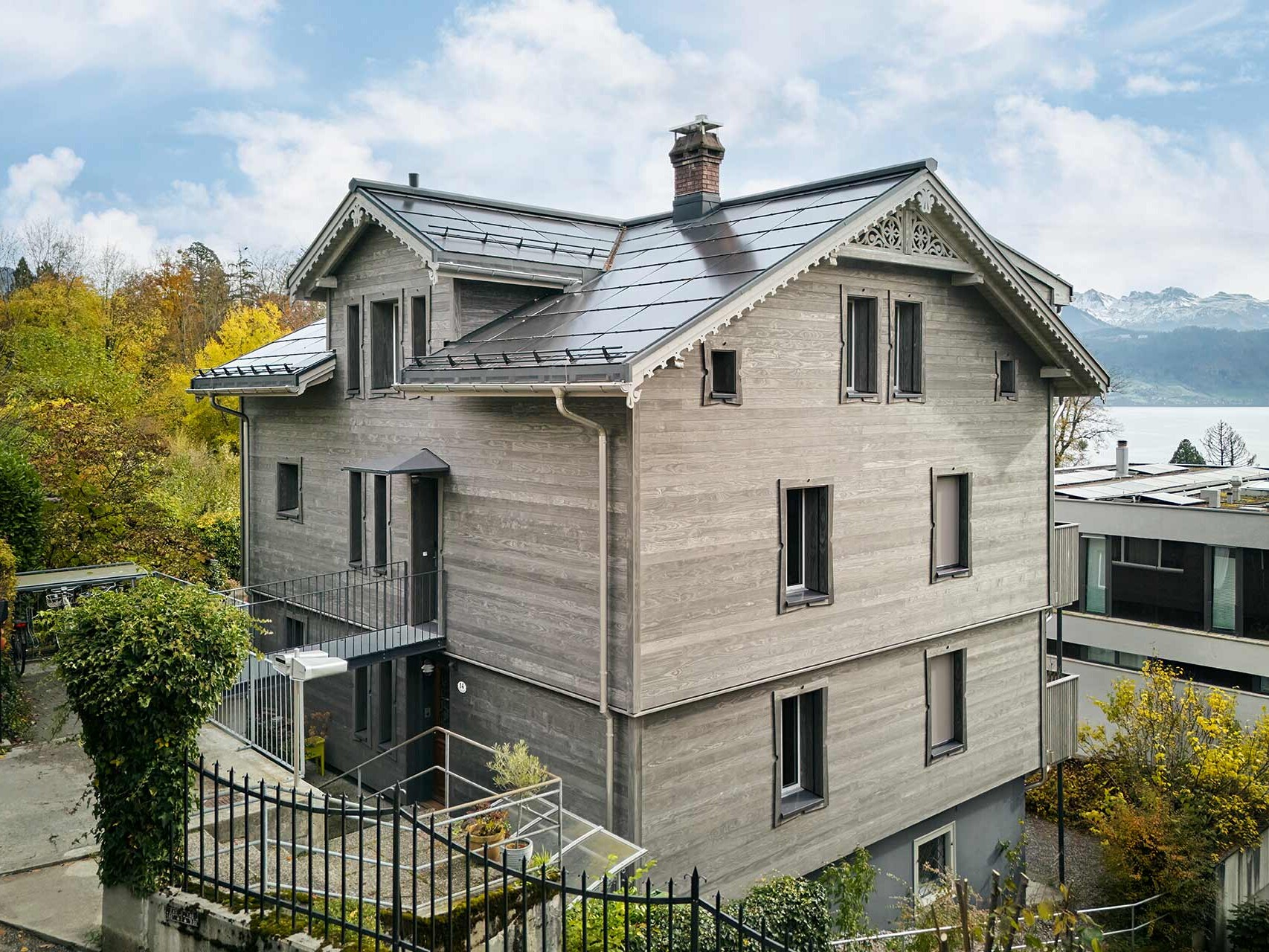 Im Rahmen der Dach- und Fassadensanierung dieses Mehrfamilienhauses durften wir die Holzbauausführung realisieren. Zum Einsatz kam Accoya Color Grey für die Fassadenbekleidung. Die hochwertige, silbergraue Oberfläche verleiht dem Gebäude eine zeitlose Ausstrahlung und fügt sich harmonisch in die Umgebung ein. Die präzise Umsetzung unterstreicht die Langlebigkeit und Qualität der gewählten Holzlösung.